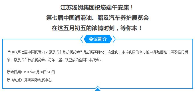 濃情端午,江蘇湯姆與您相約第七屆中國潤滑油、脂及汽車養(yǎng)護展覽會!