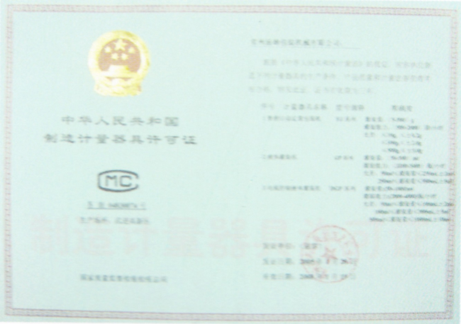 制造計量器具許可證