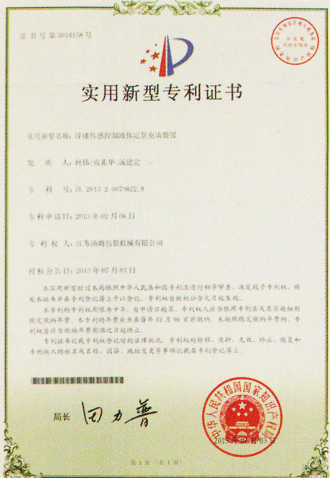 實用新型專利證書
