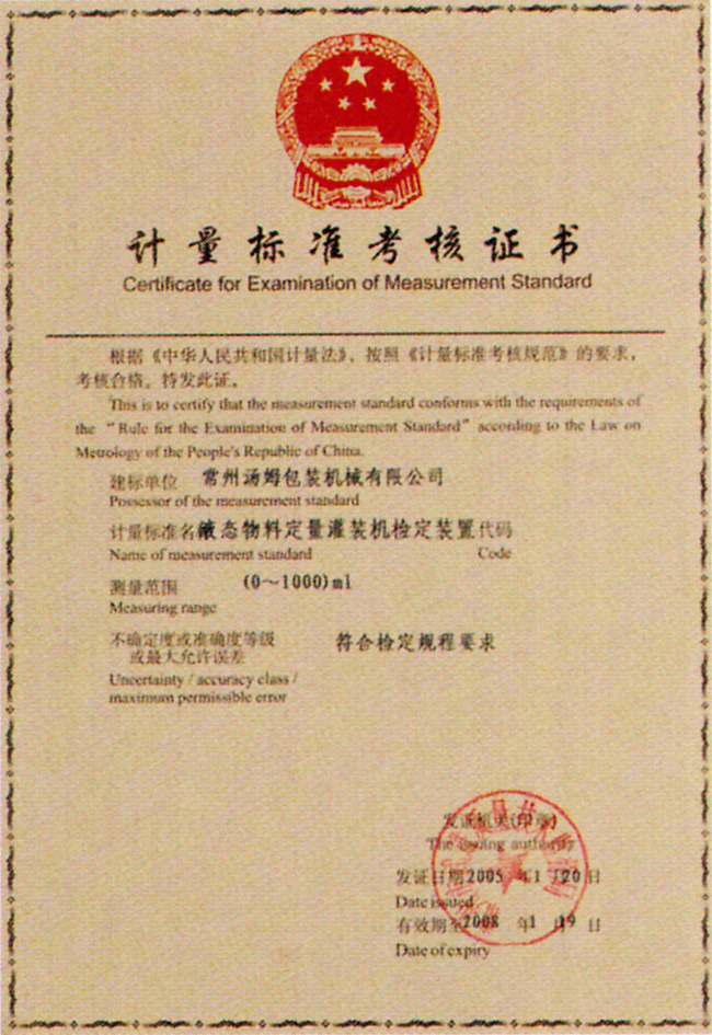 計量標準考核證書