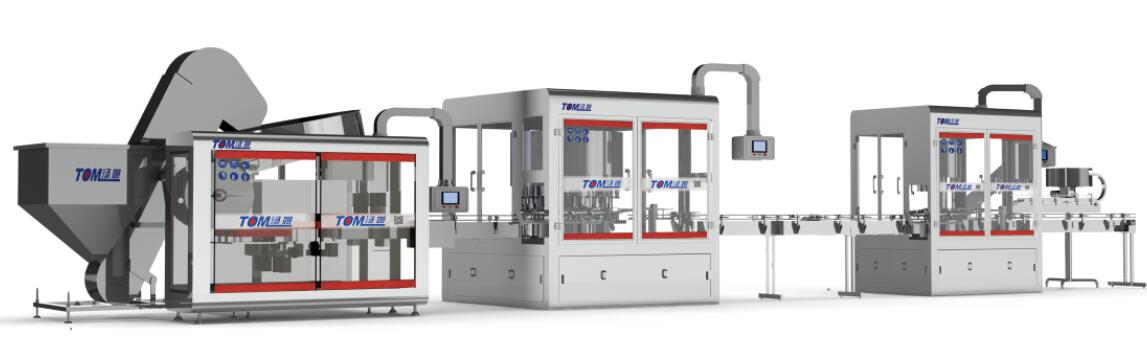 理瓶機、高粘度快灌裝,內(nèi)外防盜蓋旋蓋流水線