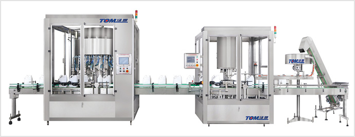 本流水線適用于水劑、乳劑、乳油以及低粘度物料的快捷定量灌裝和旋蓋。