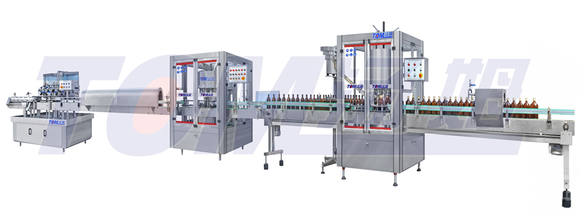本流水線適用普通500ml 回收瓶的白酒、黃酒、醬油、醋的灌裝、壓(旋、扎)蓋、貼標,對方瓶、扁瓶都適用,特殊異形瓶可定做。