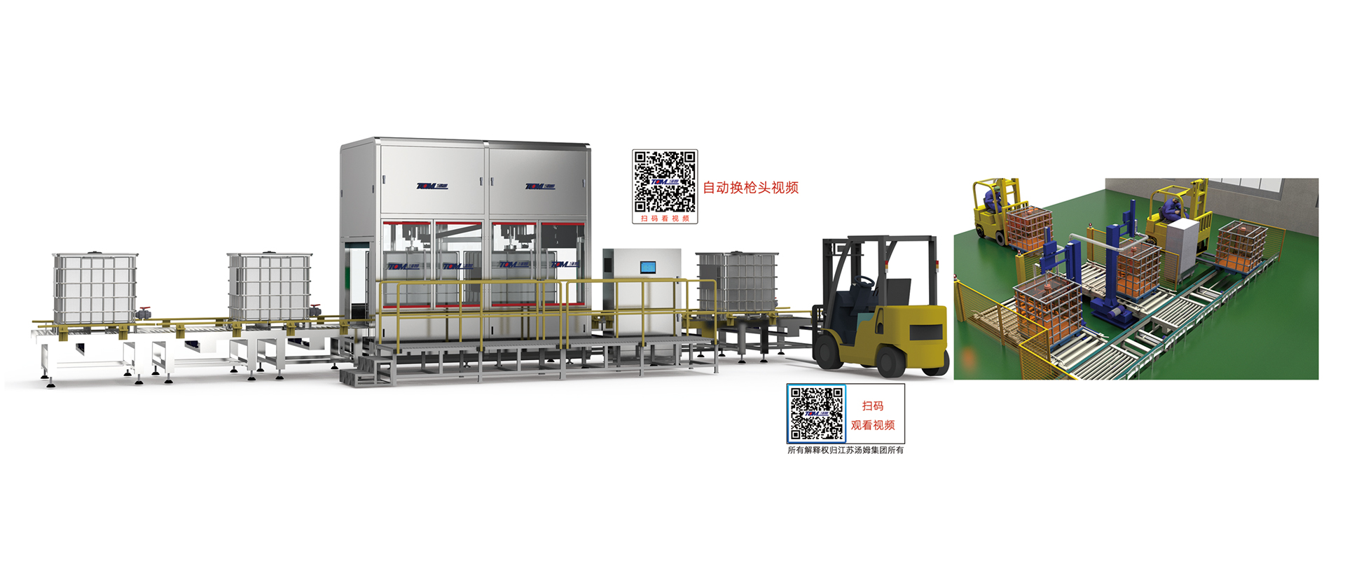 1、本線適用于農藥、化工等各類液體噸桶包裝規格產品灌裝。